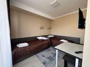 В номере: кровати, душ, сан узел, горячая вода, радио