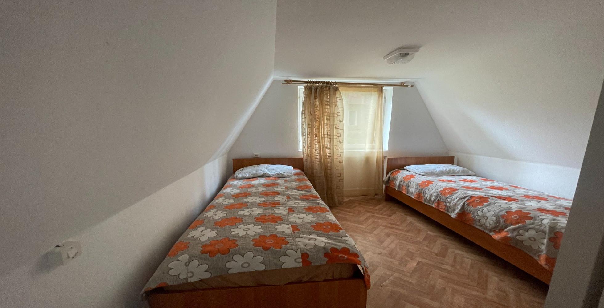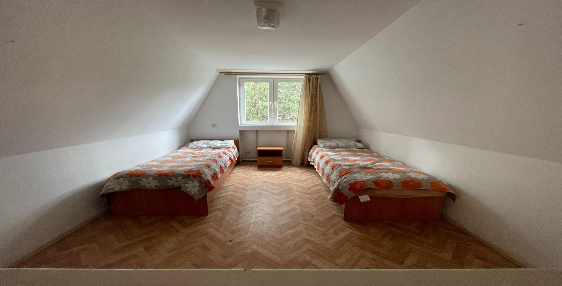2-х местные номера категории «без удобств» с балконами находятся на первом, втором и третьем этаже с видом на горы и на озеро. В номере есть раковина с холодной водой, хорошие одноместные кровати, сан.узел общий на этаже.