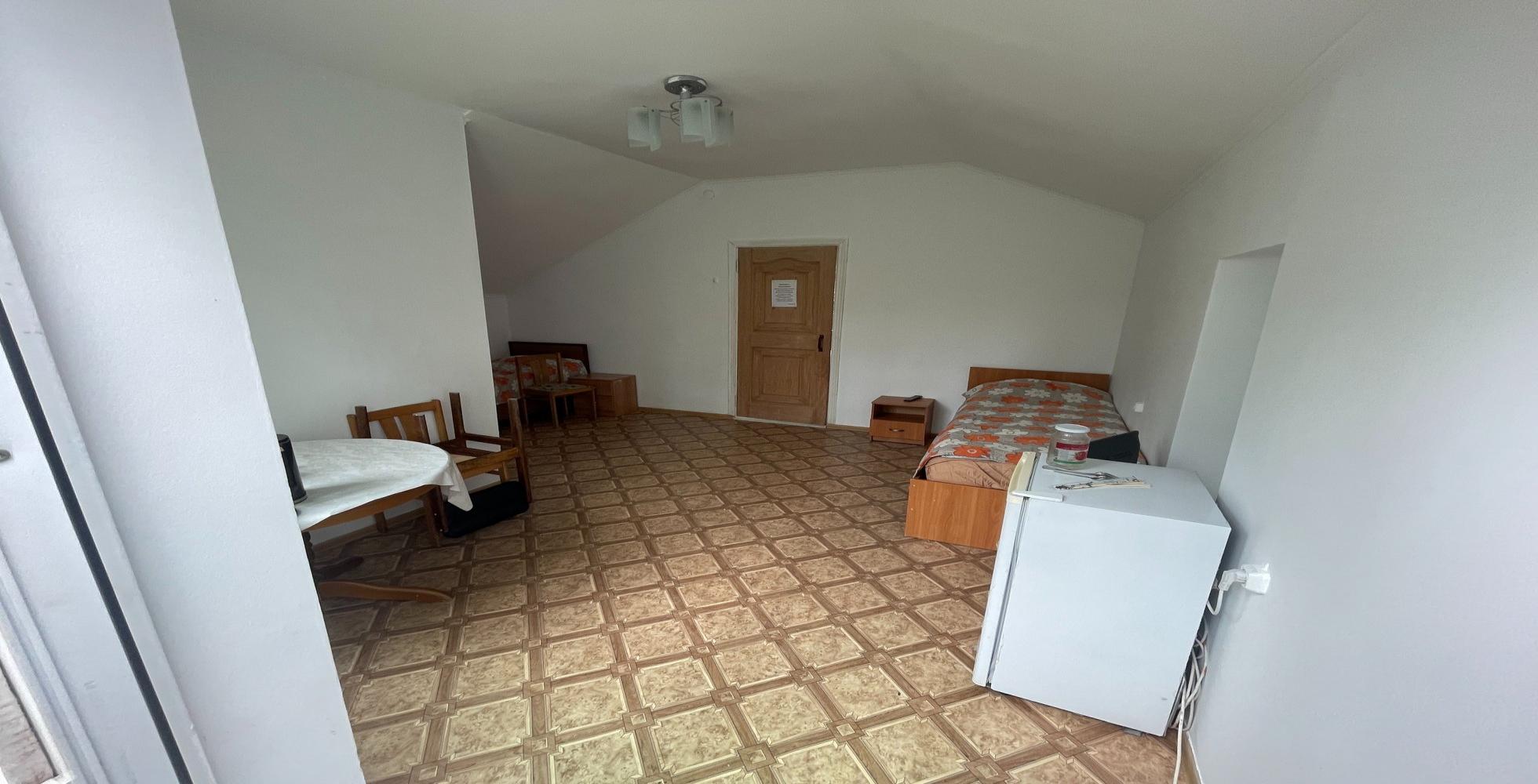 3-х местные номера категории «стандарт» состоит из одной большой комнаты и коридора. В коттедже есть санузел (душ, туалет), холодильник, телевизор. стол и стул.